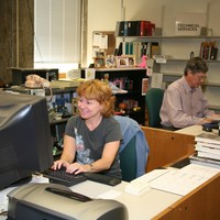 Photo of Tech Services department at Whittemore Library before their move to the Upper Mezzanine