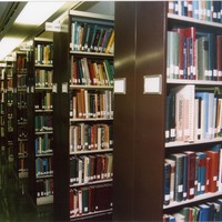 View of the stacks on the lower mezzanine level of Whittemore Library