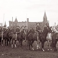 The horse-mounted unit of the Michigan National Guard assembles in Agassiz Park in Calumet during the 1913-14 Strike