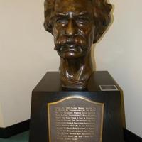 This is a bust of Mark Twain created by the The Sacramento Daily Record Union to honor his pivotal role in the paper's rapid surge in popularity during the year of 1866 because of Twain publishing his voyage logs of his trip to the Sandwich Islands (Hawaii) in the paper.
