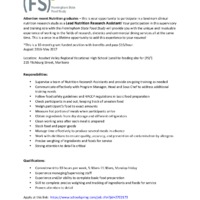 Lead Nutrition Research Assistant Job Description and Announcement