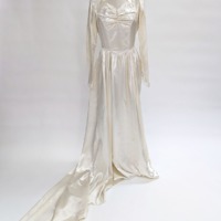 Dress worn by Anita Szumilas on her wedding day to Joseph Swiacki. Wed August 19, 1944 at St. Hedwig Church in Southbridge, MA.