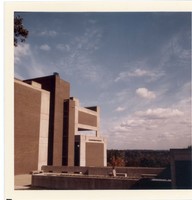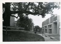 Side view of Whittemore Library and patio