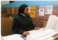 Student using the online catalog in Whittemore Library