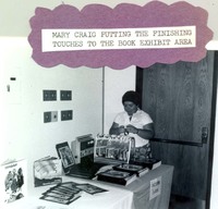 Mary Pat Craig setting up book exhibit during Loughborough Children's Literature Seminar
