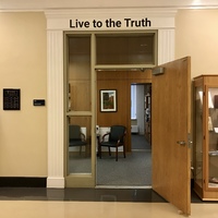 Exterior and entrance to President Cevallos' office in Dwight Hall. The President's office is the former location of the library before moving to Whittemore Library building.