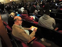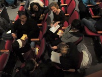 Student photographer, Laura Diffaffaele, photographed the audience during the #blacklivesmatter teach-in. Guests are asked to share their ideas on #BLM by writing some thoughts down on an index card. The crowd was then broken up into small discussion groups, each lead by one of the BLM team leaders (either a student or faculty apart of the BLM inner program), and they shared their lives with each other. The discussions traveled around the world as individuals discussed race and how different ethnicities play a part in the community as well as their thoughts on racism on campus, what the white population can do to help, and what the #BLM means to them