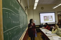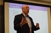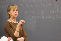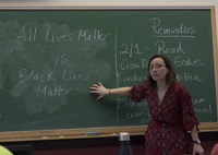 Dr. Lina Rincon lectures her introduction to sociology course about the history of the confederate flag and its significance today during a Black Lives Matter teach-in on Thurs.