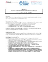 Work group meeting minutes discussing recruitment phase timeline, study name and logo, and marketing and promotion plan.