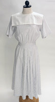 Standing figure with a long torso and arms resting on its side. The figure is decorated through carved patterning on the legs and head, along with beads wrapped around the waist and neck. The face is comprised of hollow, round eyes and an oval mouth, with a narrow nose at a higher relief. Metal pins are set around the head, and a small hole is present on the flat plane on the top of the head. This standing female figure may represent Nabo, one of the messengers of the deity Gale. Nabo figurines are placed in family altars as protection from hardship alongside the Seto, male figure. The scarification patterns, beads and decoration on the head are all reflective of the aesthetics of fertility figures.
