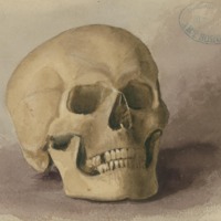 Certificate Drawing - Skull Watercolor by May Smith-Dean c. 1880