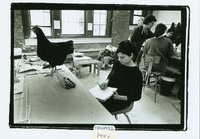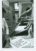 Students May Stevens and Elizabeth Sanborn at [etching press], 1944